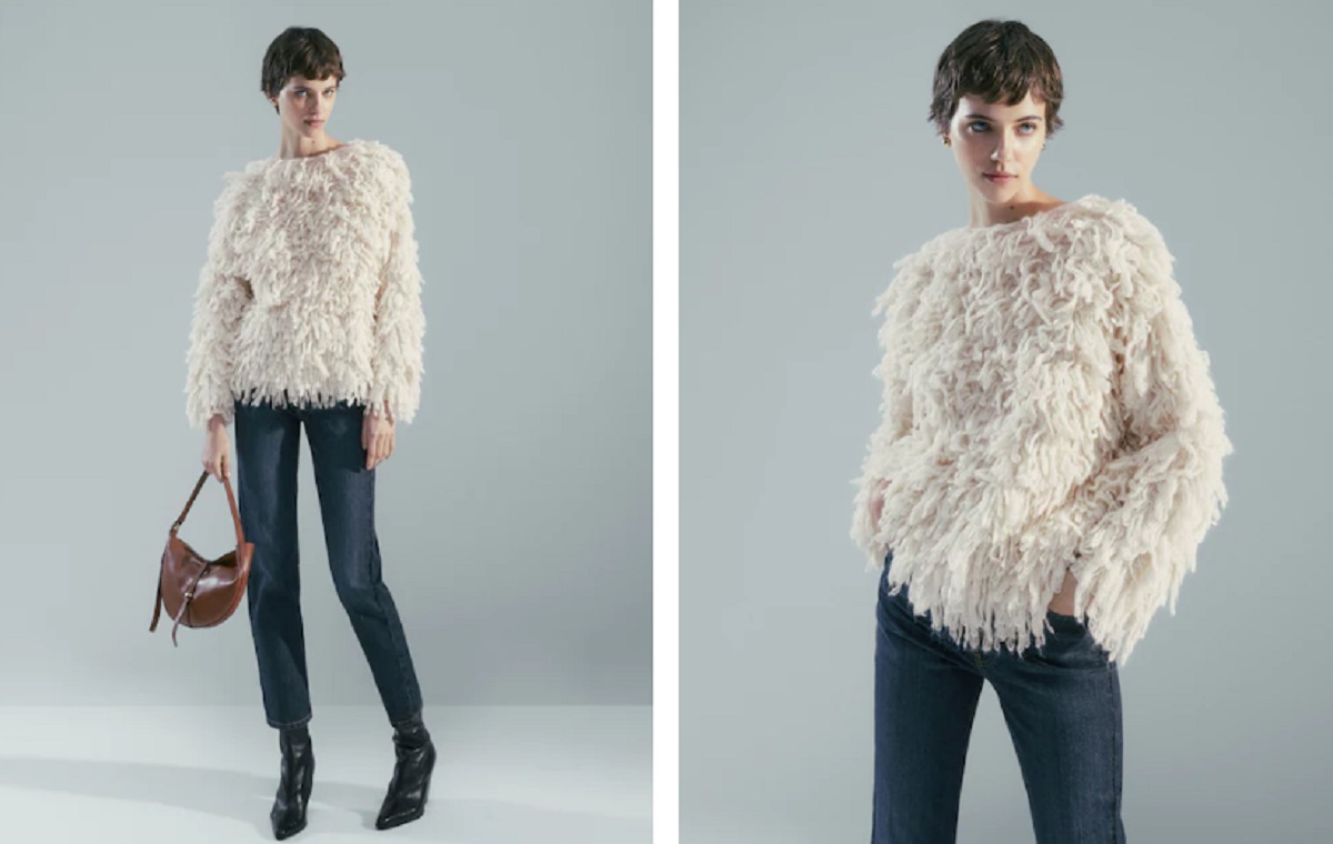 Si hablamos de originalidad, no podemos dejar de hablar de este jersey de pelo que nos tiene completamente locas. Es un modelo que podría usar perfectamente Kim Kardashian, Violeta Mangriñán, Paula Echevarría o Pilar Rubio. Es una pieza que encanta desde el principio y queda con un efecto diva total. Massimo Dutti se ha pasado muchísimo con esta pieza que nos está volviendo locas y queremos comprar enseguida. Lo que más nos ha impresionado cuando hemos hecho esta selección es que el primer precio era 149 €, después bajó a 69,95 y ahora, con una rebaja del 60%, queda en 59,95 €. O sea, vas a estar pagando menos de la mitad.