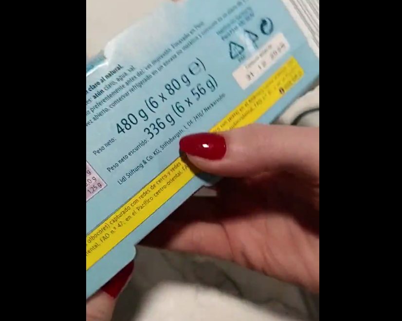 Tras pesar la lata vacía, se puede ver que esta pesa 20 gramos. Después, el usuario de Twitter pesa una de las latas llenas. Acto seguido, el consumidor decide mostrar a la cámara los datos que pone en el paquete de atún de Lidl. El peso de cada lata neto es de 80 gramos y, en escurrido, debe ser de 56 gramos. Sin embargo, cuando coloca la lata en la báscula se puede ver la cifra: 60 gramos. A esto habría que restarle los 20 gramos que pesa la lata completamente vacía.