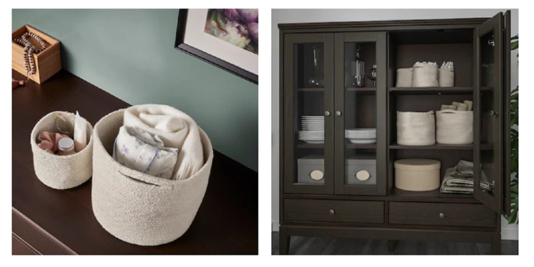 Volvemos a estar en el mismo caso que la caja con tapa. Esta cesta nos sirve para guardar muchas cositas que no nos apetece tener en cajones o se nos hace demasiado tedioso guardar en otra parte. Tenerlo en nuestra habitación o en el cuarto de baño resulta magnífico porque podrás, por ejemplo, guardar los enseres del baño. Son cosas que siempre conviene tener a mano y no tendrás que abrir nada porque la cesta natural de Ikea los deja a la mano. Otra opción es utilizarlo como un objeto para ordenar y meterlo, como en las fotos, dentro de otro mueble. Lo que está claro es que no tendrás nada tirado por ahí. Vale 7,99 euros cada cesta.