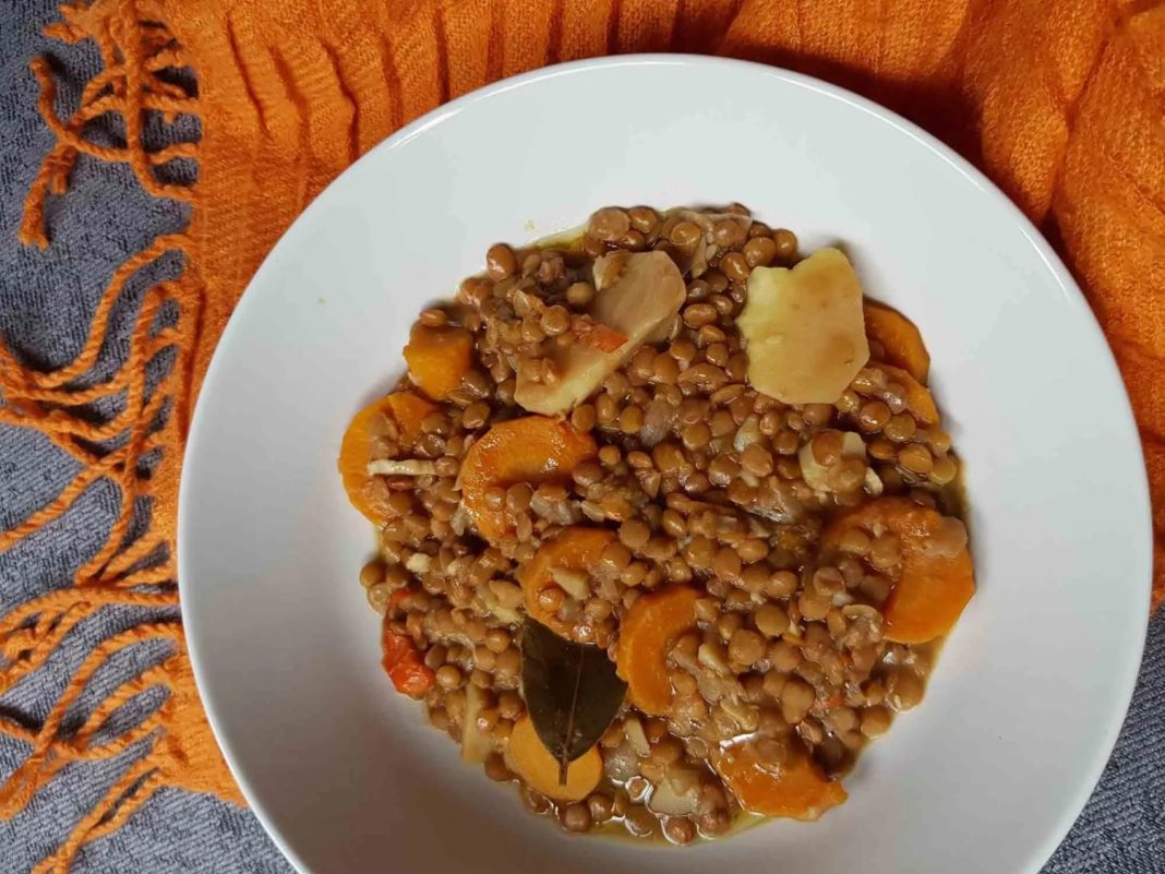 Ya que tienes los ingredientes en el fuego, lleva el agua a ebullición y deja que se cocine. Mientras va cociéndose, picamos dos cebollas amarillas. En una sartén aparte, volvemos caramelo el aceite de oliva. Cuando ya las vemos doradas, agregamos pimentón ahumado al gusto. Agregamos cebollas a la olla con verduras y lentejas. Dejamos que la preparación se cocine por media hora, mirando cada cierto tiempo para cerciorarnos de si las lentejas ya están lo suficientemente blancas.