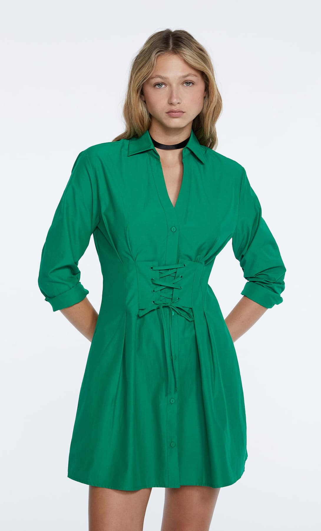 Si buscas un vestido original con el que llamar la atención, este de Stradivarius también será uno de tus favoritos. Disponible en color verde y de corte mini, destaca gracias a su bonito, sexy y elegante diseño de corset. Además, sigue siendo de manga larga, por lo que podrás disfrutarlo lo que queda de temporada. En cuanto a su precio, ahora lo puedes conseguir por tan solo 5,99 euros en lugar de 25,99. Sin duda, merecerá la pena.