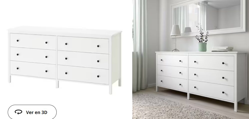 Dentro de la sección de cómodas y cajoneras de la tienda, otro de los armarios multiusos de Ikea que te cautivarán es este. De color blanco y con detalles en color negro en los tiradores, quedará elegante e ideal en cualquier rincón de tu hogar, sobre todo, en el dormitorio. Además, la puedes conseguir por 159 euros.