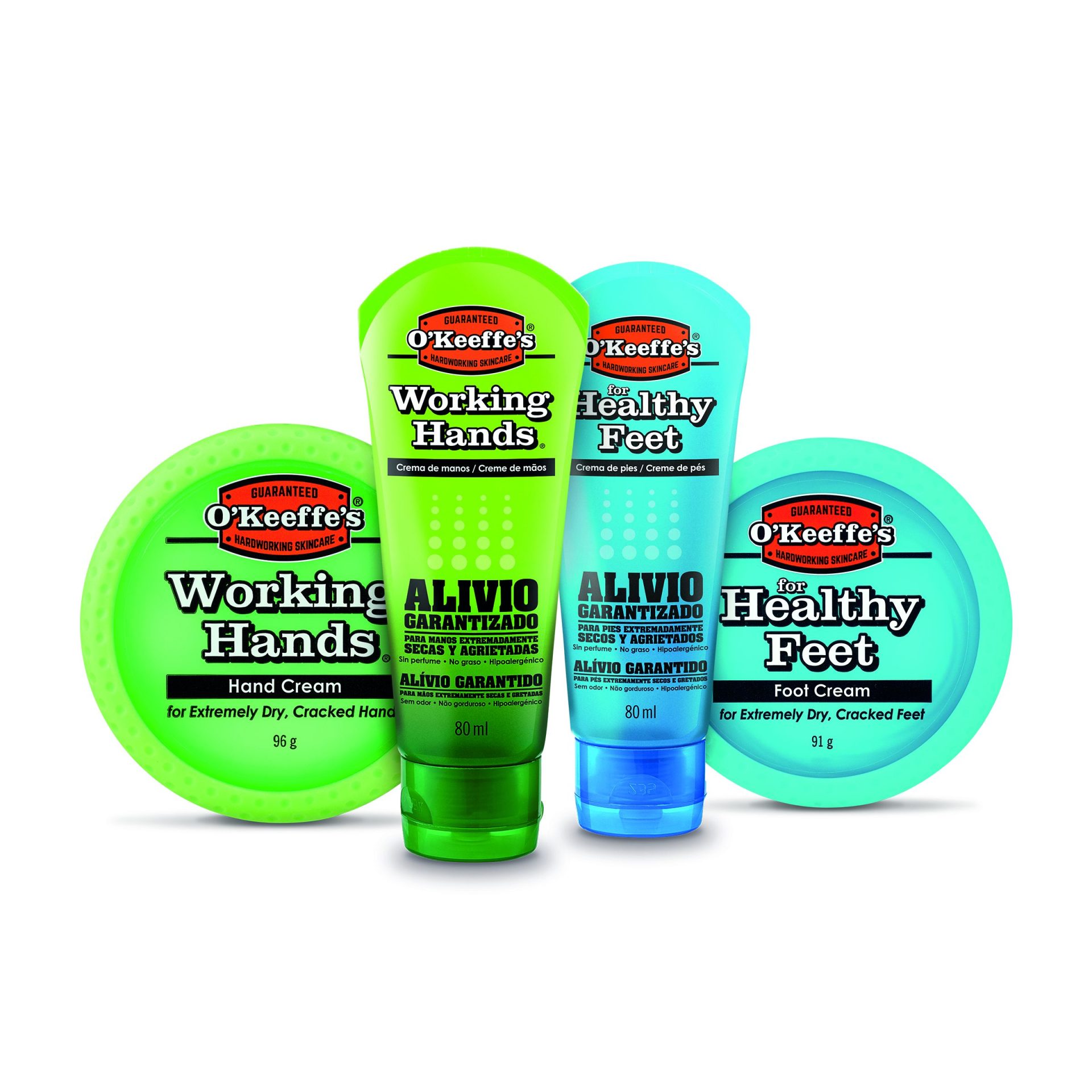 O’Keeffe’s® comercializa en la actualidad en España 2 referencias: O’Keeffe’s® Working Hands® hand cream y O’Keeffe’s® for Healthy Feet® foot cream, dos soluciones para aliviar los efectos de la sequedad severa y para proporcionar una hidratación duradera gracias a su éxito de combinación de los ingredientes.