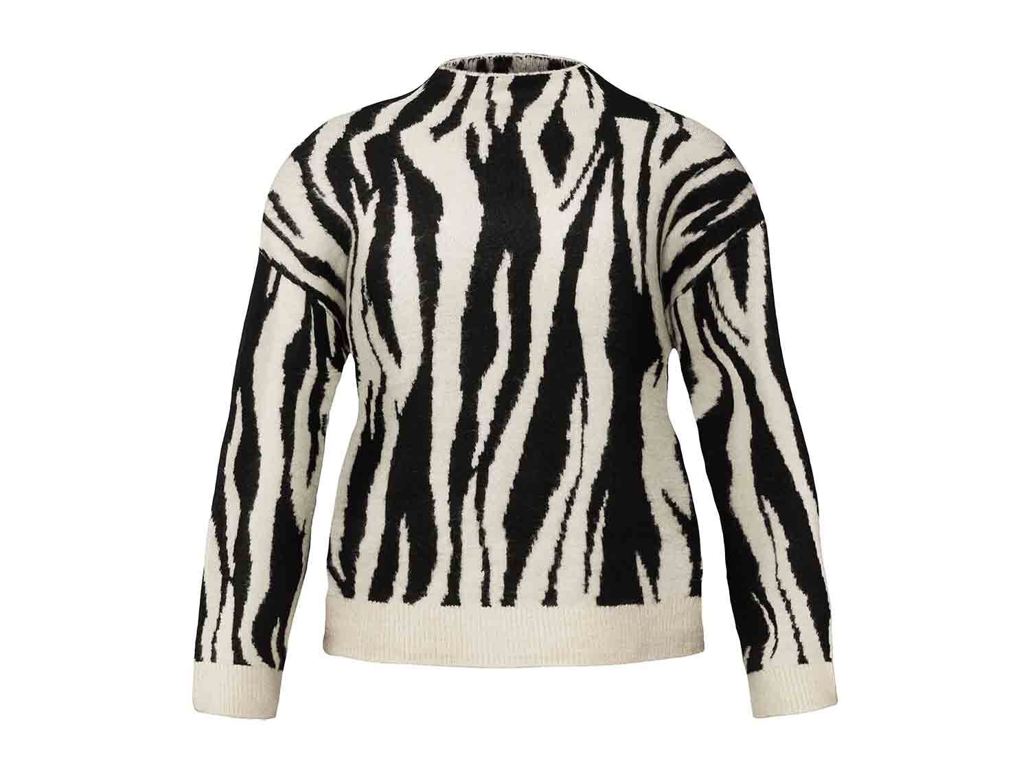 Otra prenda ideal de Lidl para lucir en el día a día es este jersey de punto, confeccionado con un tejido suave y muy agradable al tacto. Tiene el cuello perkins, muy a la moda esta temporada, manta larga y un corte ancho favorecedor y confortable. Lleva acabados elásticos en los puños y en el bajo y hay tallas de la S hasta la L. Hay dos modelos a elegir, uno con un estampado de cebra y otro estilo leopardo. Tiene un precio de 12,99 euros.