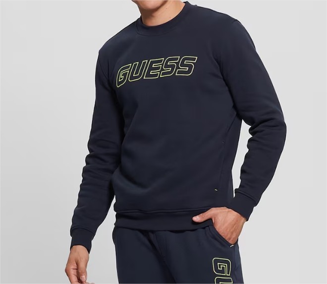 Bonita y elegante sudadera de hombre perfecta para combinar tus outfits más casual. Esta sudadera está confeccionada en algodón y poliéster en color azul índigo. En la parte frontal detalle de logo de la prestigiosa marca Guess con el cuello redondo.