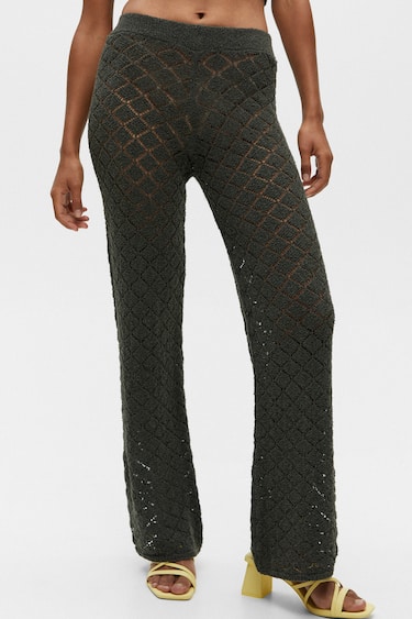 Las prendas de punto siguen en tendencia y ahora en Pull & Bear puedes hacerte con este estiloso pantalón de punto calado que podrás estrenar en cuanto llegue la primavera. Es de color verde, tiene una cómoda cintura con elástico. Está confeccionado en poliéster, viscosa y algodón reciclado, por lo que es una prenda que apuesta por la sostenibilidad. Está superrebajado y cuesta 7,99 euros.
