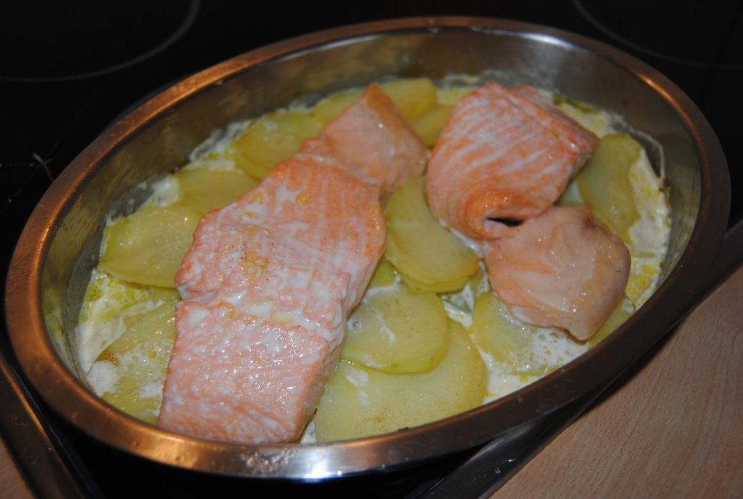 4Ponemos el salmón sazonado encima de la cama de hortalizas