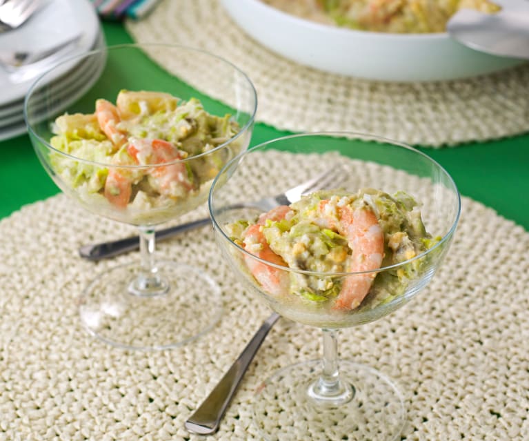 A la hora de ponernos a cocinar, en muchas ocasiones, nos resulta más fácil comenzar por un entrante. Si buscas algo sencillo que funcione como un aperitivo de categoría, este cóctel de langostinos con aguacate te va a encantar.
