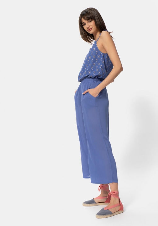 Comenzamos con este pantalón de viscosa para mujer. Es de estilo fluido y está hecho de viscosa al 100%. Disponible en azul luz índigo, lo ponemos encontrar en tallas que van desde la XS hasta la M, pues las tallas grandes se han agotado.