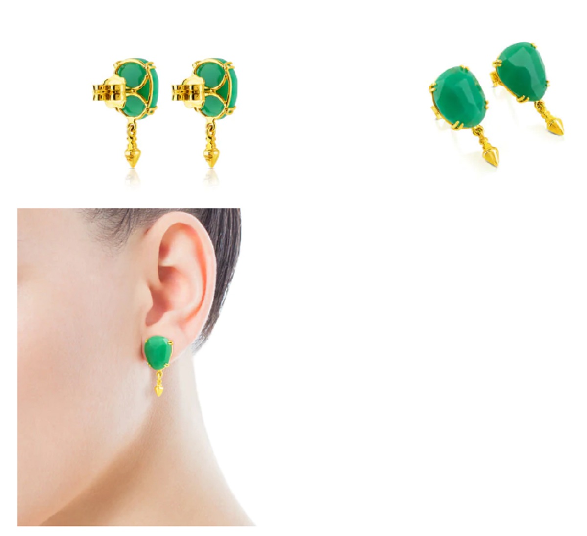 Seguro que has conocido alguien alguna vez que se atreve a llevar ese color en joyas. Todos conocen a una. Es atrevido y hay que tener personalidad para llevarlo. Eso sí, te aseguras e que nunca pasarás desapercibida vayas donde vayas. Poseen oro amarillo de 18kt y crisoprasa. Su cierre es de presión. Antes valía 395 euros y ahora 264.