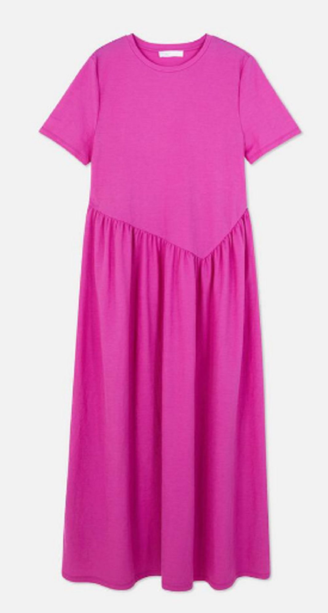 Hablando de comodidad nos topamos con este vestido midi asimétrico que es sinónimo de ‘confort’. Aunque parezca que te lo pones una vez y después todos saben que repites modelito, tienes muchas formas de combinarlo. Con tacones y cinturón negro en medio para salir de noche, con blazer y mocasines para el trabajo o con botas texanas y una chaqueta de cuero arriba. Estos son solo algunos ejemplos de lo lejos que puedes llevar esta prenda. Y tan solo por 18 euros. ¡Chollazo total!