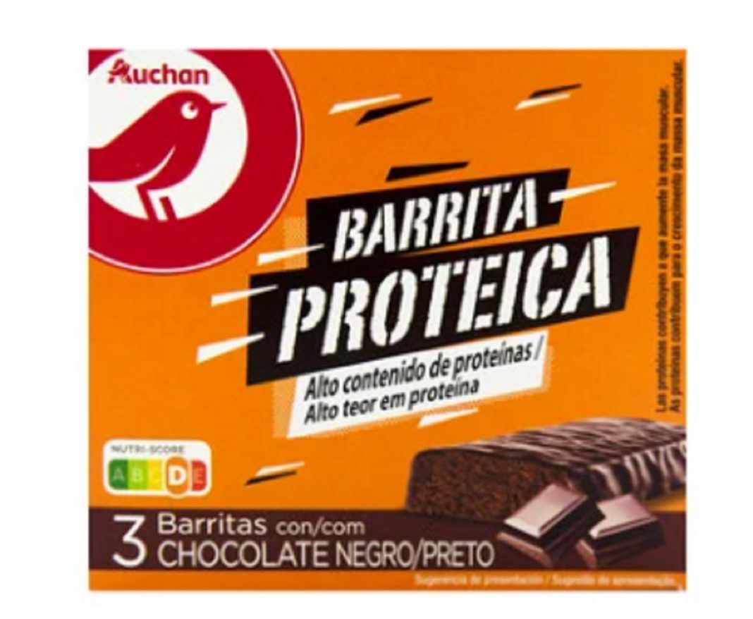Estas barritas de Alcampo están explotando el mercado. Vienen en cajas de 3 unidades y salen 2,75 euros. Un precio más que económico teniendo en cuenta que se trata de un alimento para deportistas. Con este producto, la marca demuestra que no tiene nada que envidiar a otras firmas de renombre. En su composición encuentras leche, jarabe de glucosa, jarabe de fructosa, cobertura de chocolate negro, cacao en polvo y humectantes.