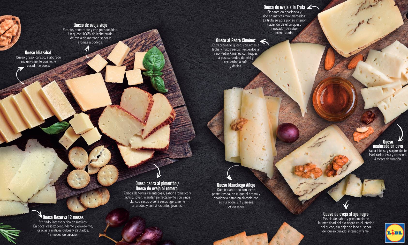 Pero este no es el único queso de Lidl que causa furor. También hay que tener en cuenta algunos de sus quesos premiados más famosos. Algunos ejemplos de ellos son el queso añejo al Pedro Ximénez, el mezcla curado Roncero o el queso fresco tradicional de cabra, también de la marca Roncero. Por último, destacan, entre otros, el queso de oveja trufado, el queso de oveja con jalapeño y la opción con mojo picón.