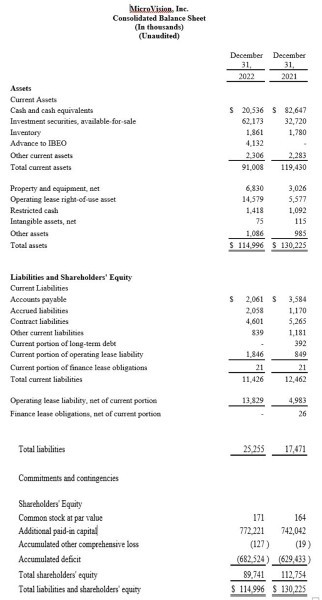MicroVision, Inc. (NASDAQ:MVIS), líder en soluciones lidar y ADAS para automoción basadas en MEMS de estado sólido, ha anunciado hoy sus resultados del cuarto trimestre y de todo el año 2022