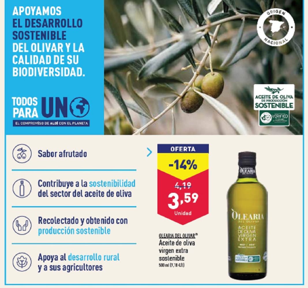 El aceite de oliva virgen extra es un infaltable en casa. Hay muchas comidas que solo alcanzan su máximo potencial cuando les ponemos aceite de oliva. Algunos médicos recomiendan que se priorice este tipo de aceite porque resulta más sano que otros. No obstante, en su alto precio el que hace que terminemos decantándonos por otros. Esta semana tiene un 14% de descuento, pasando de 4,19 euros a 3,59 euros la unidad.