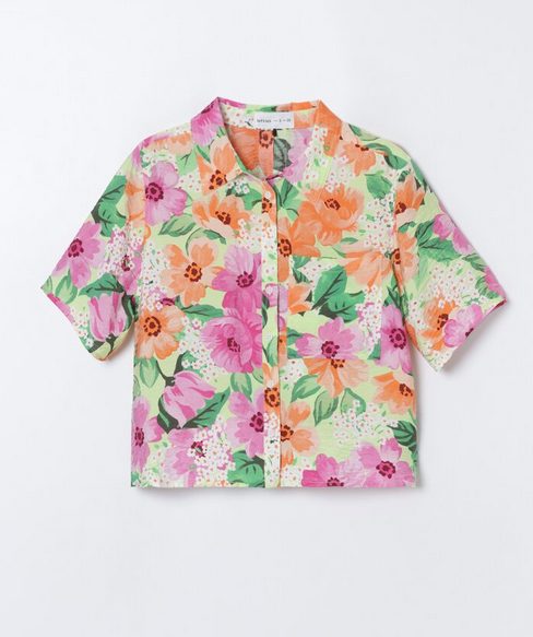 Las camisas son esa prenda casual con la que podemos conseguir looks muy apañados y favorecedores. Un clásico cuando llega la temporada de sol y calor, son las camisas estampadas como esta de Lefties, llena de flores coloridas para darle un toque de alegría a nuestro outfit. Es una camisa de manga corta a altura del codo y botonadura delantera. Es un diseño corto y holgado de un tejido fluido y muy ligero, hecho de viscosa y poliamida. El precio es de solo 12,99 euros.
