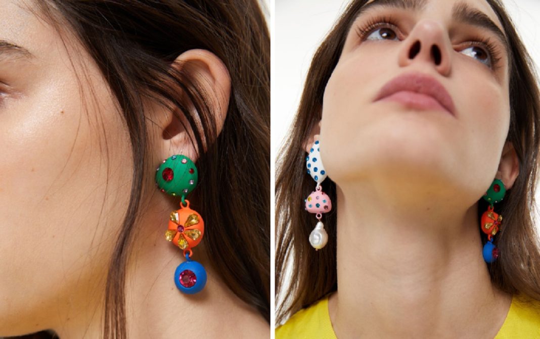 ¿Quién dijo que los pendientes tenían que ser algo serio o aburrido? Sfera demuestra con este diseño que es posible crear estilismos descontracturados con estos pendientes irregulares de fimo con aplique de pedrería. Se parecen, pero no. Son una oda al desorden, ese mismo desorden que permite que las cosas fluyan de forma natural. Su precio es 5,99 euros.