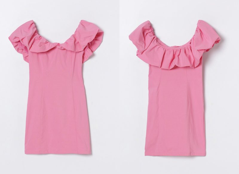 Aunque no se trata de un modelo estampado, consideramos que tiene que aparecer en este listado este vestido con hombros descubiertos, ya que se trata de un modelo ideal para lucir con la llegada del buen tiempo y la subida de las temperaturas. De color rosa, se vende por 19,99 euros.