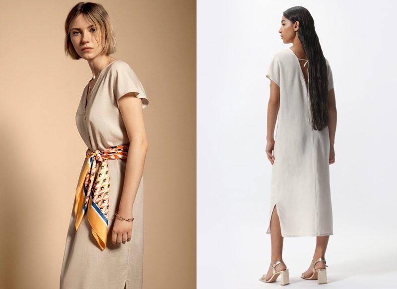A la venta por 22,99 euros, es un vestido fluido de manga sisa que está confeccionada en un agradable y cómodo tejido fluido. Elaborado con viscosa, algodón y lino, resulta muy agradable de utilizar y ofrece muchas posibilidades, por lo que es un indispensable para tu armario esta primavera.