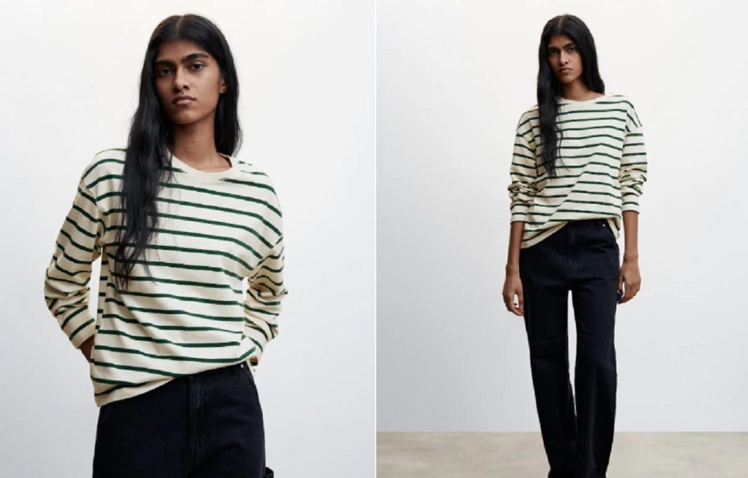 Las rayas son un básico que viene todos los años demostrando que no pasa de moda nunca. Esta es una clara prenda de esas que incluimos en nuestro fondo de armario porque sabemos que la usaremos sí o sí. Cuenta con diseño recto y cuello redondo con manga larga. Su tejido está confeccionado con 100% algodón. Estamos en las mismas. Dependiendo de la situación en la que la lleves puesta puedes adecuarla para que sea más formal o urbana. Vale 22,99 euros.