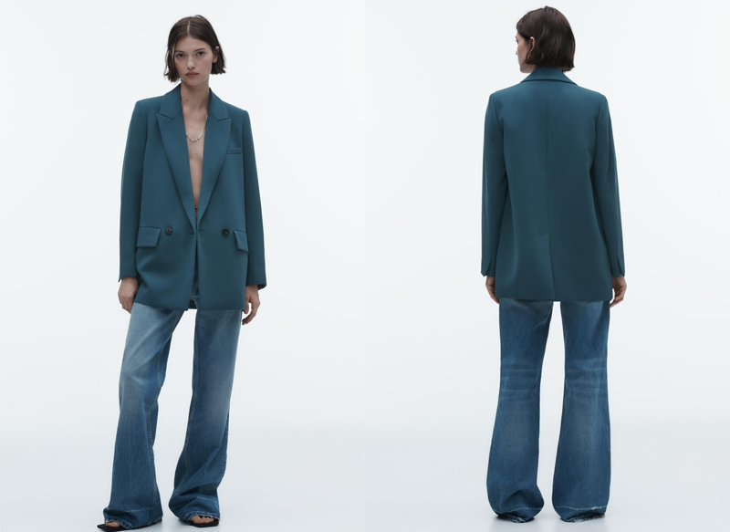 Una alternativa a las anteriores y una opción a tener en cuenta, sobre todo para unos looks más casuales, es esta blazer fluida larga, un modelo de color añil que se pueden encontrar en la cadena de tiendas del grupo Inditex por un precio de 39,95 euros.