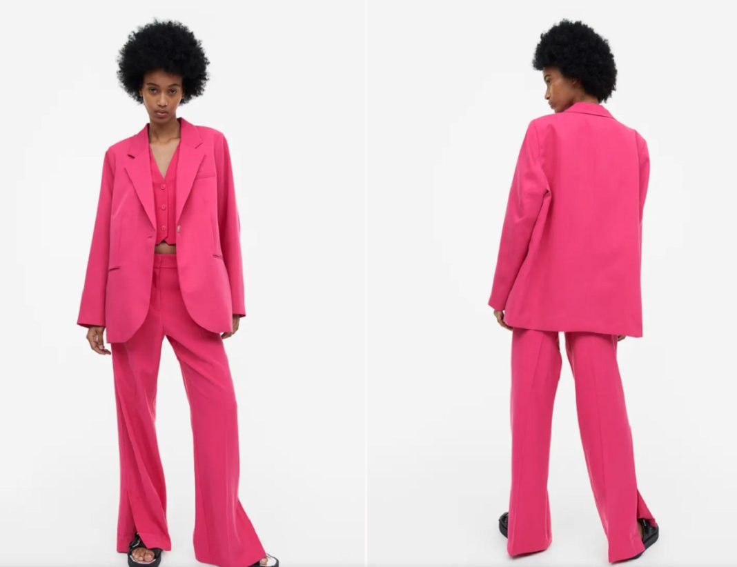 H&M no obvia el hecho de que los colores rosas fuertes se llevan muchísimo esta temporada. Ya empezamos a verlo en 2022 y nuevamente volvemos a gozar de prendas de estas características. Es increíble la luminosidad que otorga al rostro sin importar cuál sea tu color de piel. Se te verá a kilómetros y, aunque sea un color vivo y llamativo, queda fenomenal en altas ejecutivas. ¿Perder el ‘glamour’? ¡Jamás! Su precio es 34,99 euros.