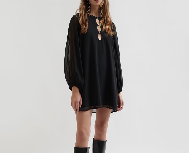 Brownie se suma a la fiesta de descuentos que encontrarás en la sección de moda y complementos de El Corte Inglés para celebrar las segundas rebajas con este vestido corto fluido con aperturas.