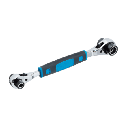Esta llave de tubo tiene un cabezal ajustable de forma que se puede adaptar en diferentes tamaños: 8, 10, 12, 13, 14, 17, 19, 21 mm. Son, por lo tanto, 8 llaves en una. Se puede manejar muy cómodamente con una sola mano y las diferentes medidas se adaptan sin tener que cambiar los cabezales, por lo que ocupa muy poco espacio en la caja o bolsa de herramientas del coche. Puedes conseguirla por 9,99 euros.