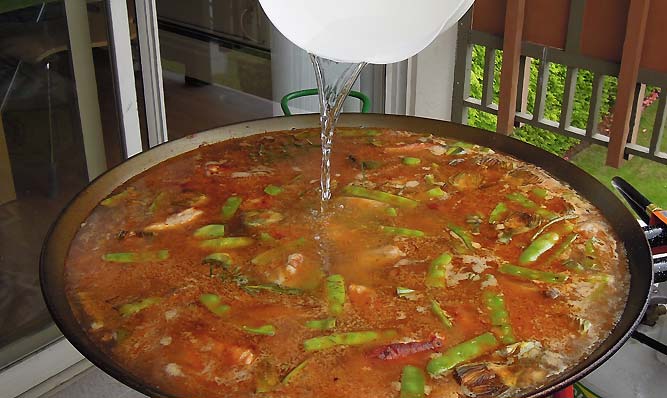 Pues simplemente porque los grandes cocineros valencianos lo han comprobado. Echan el agua, siempre del grifo. Uno de los secretos puede ser que dicen que el agua de Valencia lleva mucha cal y ese es uno de los grandes secretos de la paella valenciana. Está claro que para hacer una buena paella no podremos irnos a la Comunidad Valenciana a por agua de allí, de su red pública… pero usando agua del grifo la paella será más ortodoxa que si la usamos mineral o ponemos caldo. La verdad es que nos gustaría saber si piensas igual. Lo que está claro que es si quieres hacer una auténtica valenciana, di adiós al caldo y ten cuidado con las medidas.