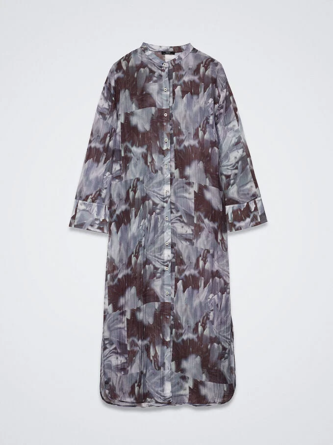 Los vestidos de estilo camisero están muy en tendencia, así que no puede faltar uno de estos diseños en tu armario. Parfois nos propone este modelo de corte midi y de manga larga, con cuello de solapa, manga larga con botones en el puño y cierre delantero completo abotonado. Tiene una abertura lateral para darle movimiento y comodidad y está confeccionado en 66% liocel y 34% poliamida. Tiene un original estampado multicolor y es talla única, diseñado para adaptarse a diferentes siluetas. El precio es de 35,99 euros.