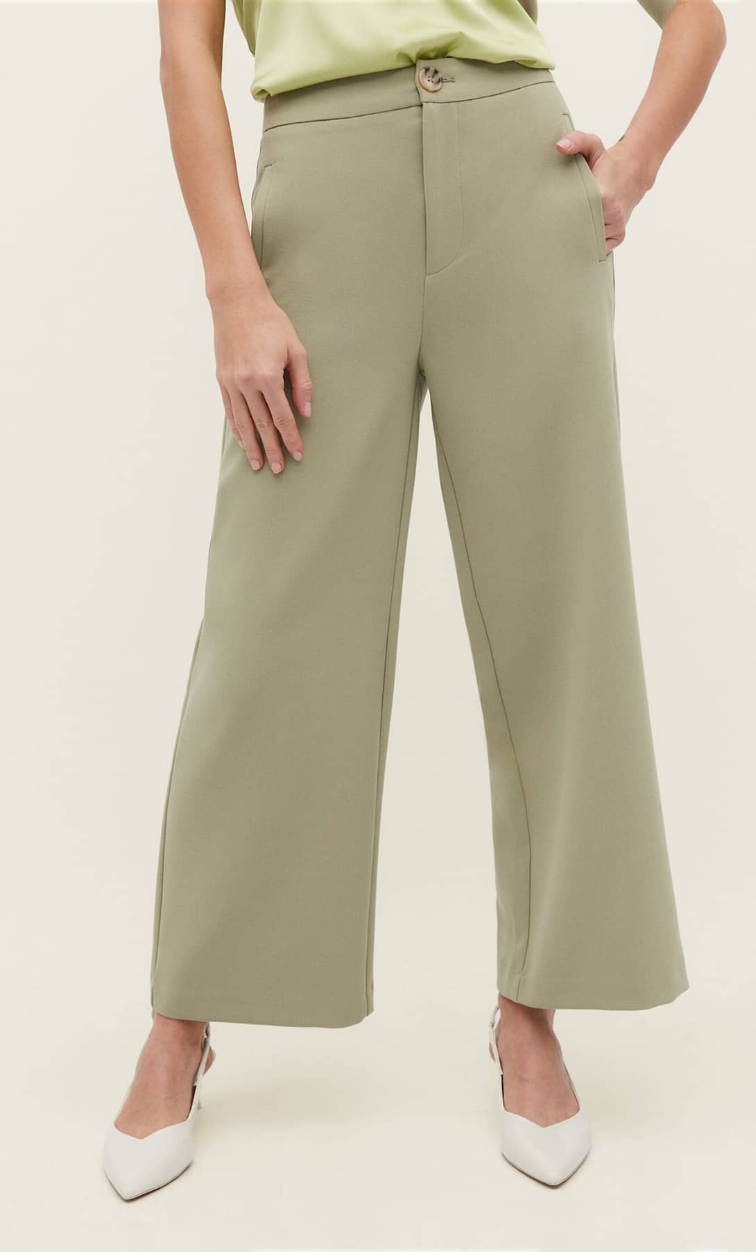 El color verde oliva es uno de los que más verás esta primavera. Por este motivo, este es otro de los pantalones de Stradivarius que no querrás perderte. Además, llama la atención gracias a su diseño culotte y su estilo rústico, perfecto para usarlo a modo de traje. En cuanto a su precio, te puedes hacer con él por tan solo 25,99 euros.