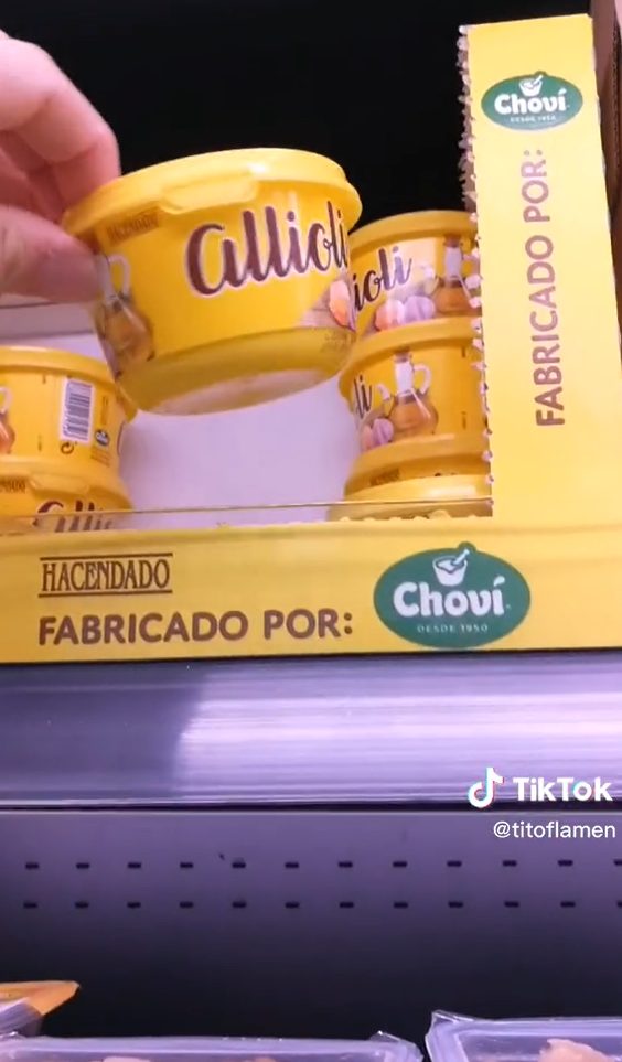 El descubrimiento de este usuario de TikTok ha dejado sorprendidos a sus seguidores. En este caso, Molina explica que, muchas veces, la marca blanca y la reconocida están fabricadas por el mismo proveedor. En otras palabras, son iguales en sus ingredientes y composición. El ejemplo que pone para demostrarlo es el del alioli de Hacendado, así como el de Chovi, mostrando que ambas son iguales. Sin embargo, el precio de Chovi es un 20% más caro.
