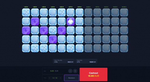 Cada vez que avances y caigas en una casilla sin un frágil cubito de hielo, ganarás más dinero. Puedes recogerlos a medida que avanzas o seguir jugando para aumentar tus ganancias. En cualquier caso, ten en cuenta que el juego termina cuando caes en una casilla demasiado frágil o cuando cobras.