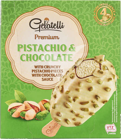 3Helado gelatelli premium de pistacho y chocolate de Lidl