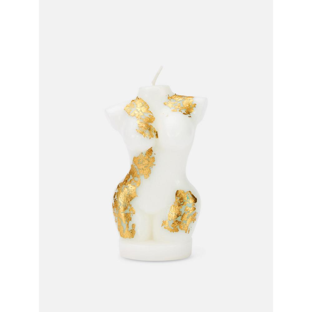 Las velas son uno de esos detalles que nunca pasan de moda. Mucho menos, si eliges una tan llamativa como esta, ya disponible en la sección de hogar de Primark. En forma de silueta femenina con base en color blanco, destaca, sobre todo, por sus toques de diseño dorados. Apta para elevar el look de cualquier habitación, te puedes hacer con ella por tan solo 3,50 euros.