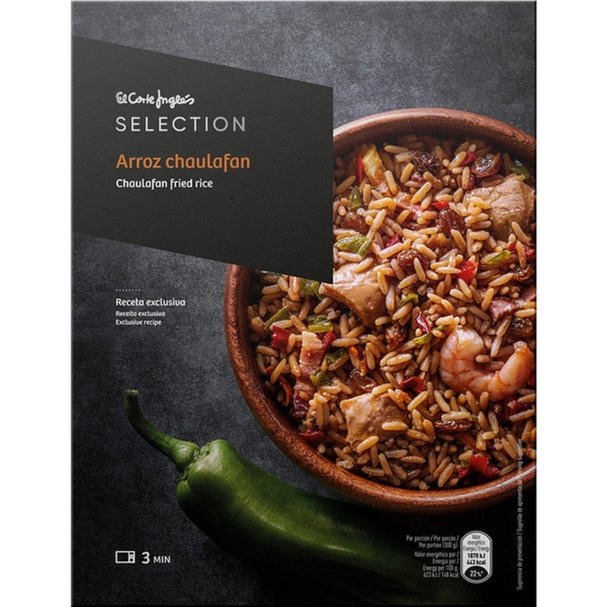 Entre las delicatessen que ofrece El Corte Inglés, tenemos el arroz chaulafán. Es arroz frito con dados de beicon ahumado, gambas peladas, pasas de Corinto y una riquísima combinación de especias recién molidas. Si eres de esos amantes del arroz a los que les encanta experimentar, aquí tienes un plato que se sale de lo convencional y que puedes hacer en 3 minutos. ¿Comes en el trabajo? Se convertirá a partir de ahora en tu mejor aliado.