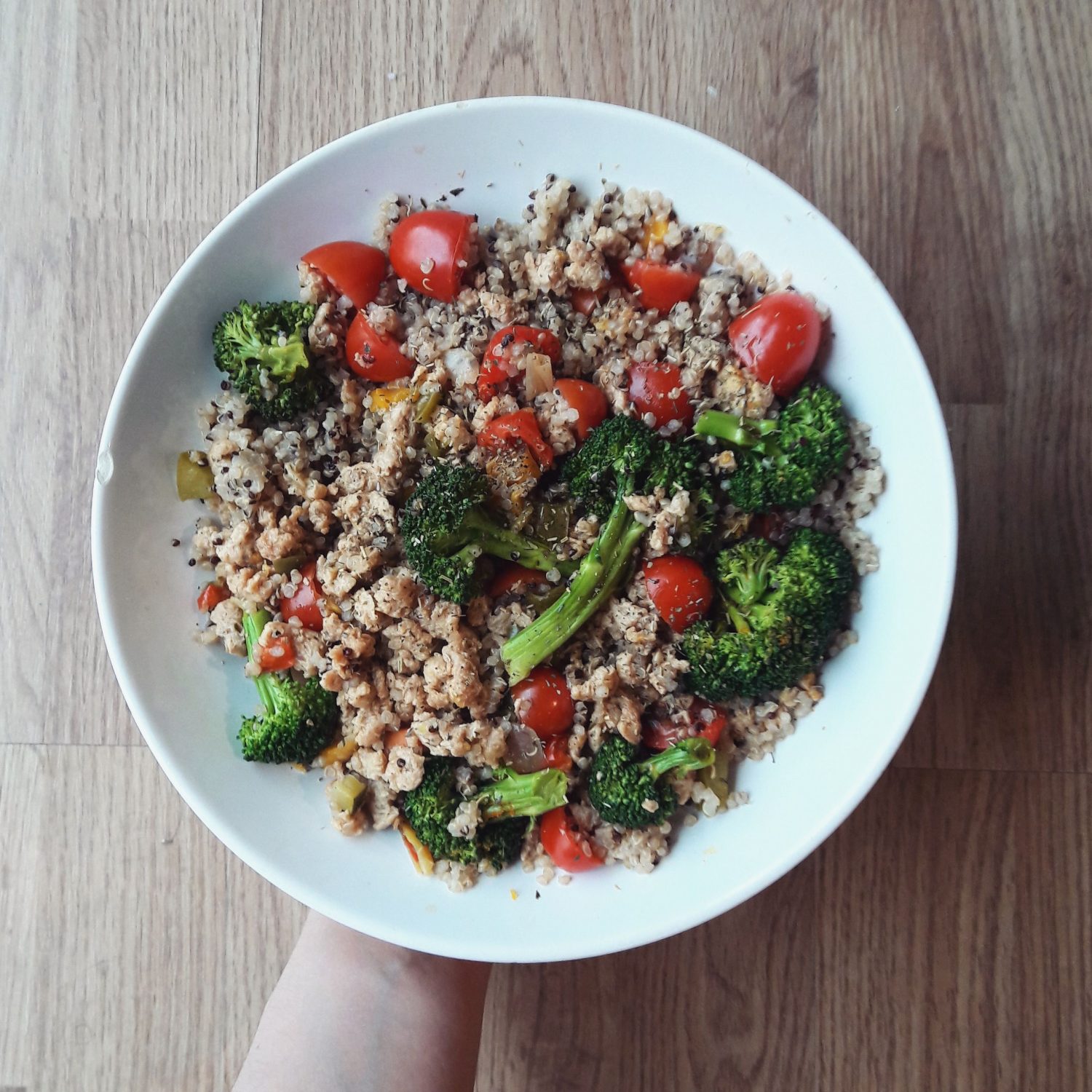 La soja texturizada es otra alternativa deliciosa. Primero hay que remojarla para que se rehidrate y se ablande. Después, se escurre y se puede añadir tal cual, o bien saltearla con aceite de oliva y especias al gusto. Aporta fibra y proteína, además de consistencia y sabor. Una propuesta deliciosa: mezcla de verduras de hoja verde, zanahoria, tomate, pimiento, pepino, algún encurtido, y hierbas frescas, como perfil o cilantro. Para el aliño usamos zumo de limón, aceite de lino y gomasio.