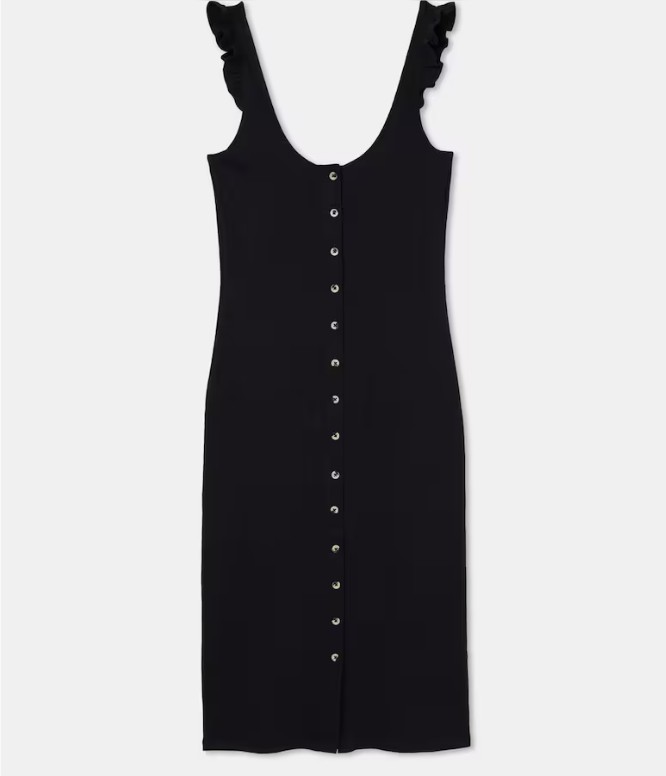 Un vestido canalé de tirantes con botones bonito y sencillo para que lo puedas utilizar sin problema en tu día a día. Y viendo su precio, es otro de esos imprescindibles en cualquier fondo de armario. Si te interesa esta prenda, aquí la encontrarás.