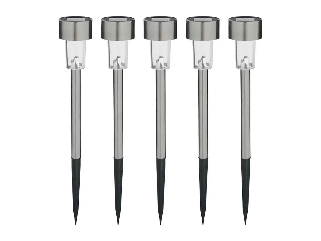 Ilumina tus espacios exteriores de forma ecológica y sostenible con estas lámparas solares LED, que funciona con un pequeño panel solar y se encienden automáticamente con la oscuridad. El LED es de larga duración con luz blanca fría. Cuentan con protección contra chorro de agua y una piqueta 12,3 cm de longitud para clavar en el suelo e incluso en una maceta. Tienen una autonomía de unas 8 horas, aunque también se pueden apagar manualmente. El set de 5 unidades cuesta en Lidl 7,99 euros.
