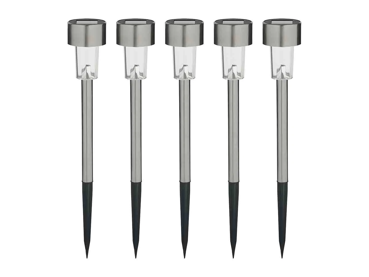 Ilumina tus espacios exteriores de forma ecológica y sostenible con estas lámparas solares LED, que funciona con un pequeño panel solar y se encienden automáticamente con la oscuridad. El LED es de larga duración con luz blanca fría. Cuentan con protección contra chorro de agua y una piqueta 12,3 cm de longitud para clavar en el suelo e incluso en una maceta. Tienen una autonomía de unas 8 horas, aunque también se pueden apagar manualmente. El set de 5 unidades cuesta en Lidl 7,99 euros.