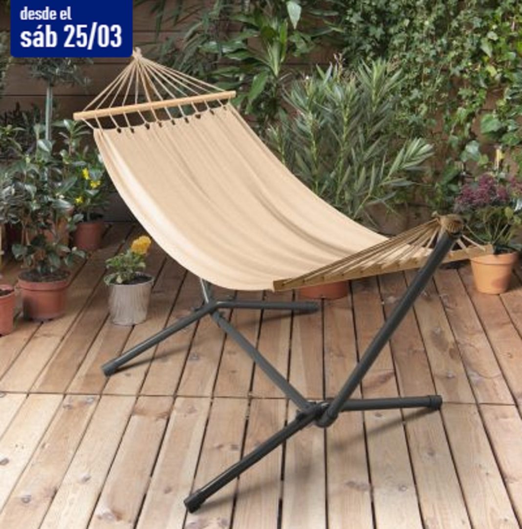 Aldi tiene el mejor producto que puedes adquirir si tienes un jardín. Después de un largo día de trabajo, donde parece que los problemas sobreabundan, no hay nada como llegar al jardín, tumbarse en una hamaca y empezar a disfrutar. Su tamaño es de 300x120x107c. La tela tiene 200x100cm y su carga máxima es de 100kg. Es de montaje fácil e incluye una bolsa de transporte. ¿Quieres darle un toque diferente al jardín? Por 54,99 euros, esta hamaca será tuya.