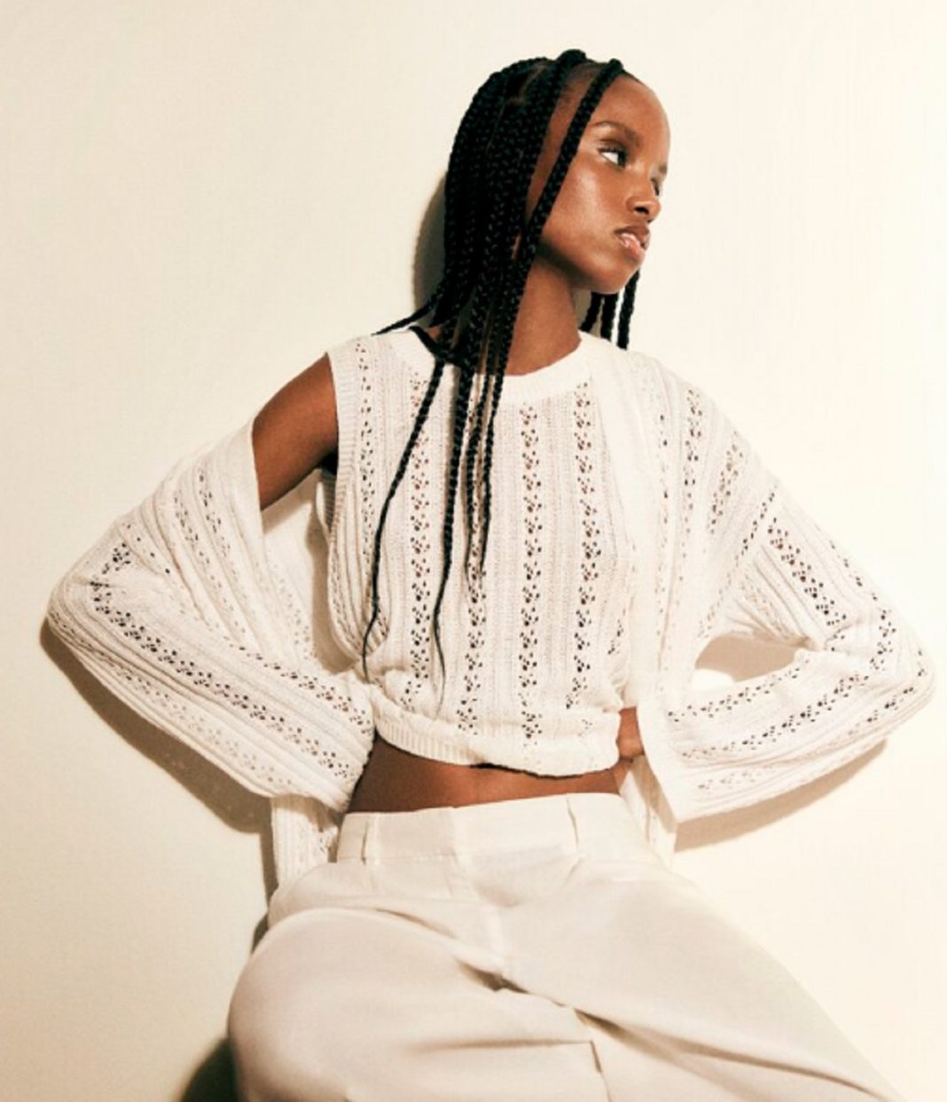 El calado causa furor cada vez que sale al mercado, razón por la que la firma de Inditex ha decidido incluirlo en esta colección de primavera. Tiene un tejido cómodo 100% algodón que si tuviera más tela podría convertirse en un jersey fabuloso, pero ahora es un top por el que todas se derriten. Cuenta con cuello redondo y manga sisa de punto calado. Se confeccionó a base de un tejido cómodo 100% algodón. Su precio es 9,99 euros.