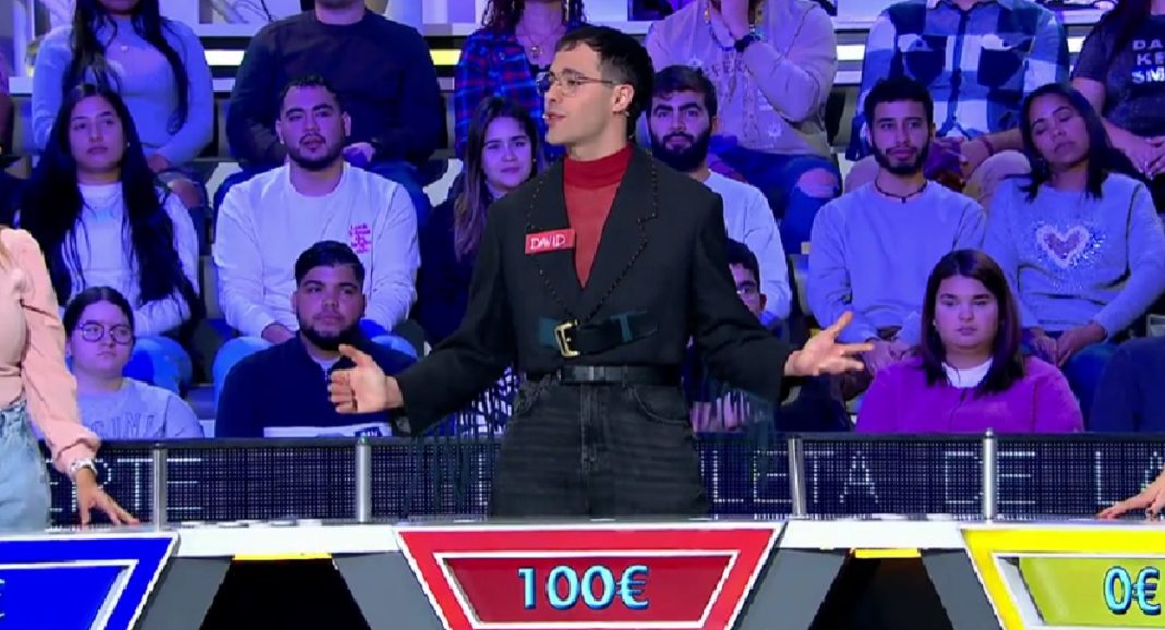 David es el concursante que ha conseguido acaparar la atención del público de “La ruleta de la suerte”. Estrenó su marcador después de resolver el panel de velocidad que abre el programa para que sus aspirantes se lleven sus primeros 100 euros. El joven alicantino de 23 años vive en Madrid y su objetivo en el programa era conseguir el máximo dinero posible para irse de mochilero. Si bien esta motivación llamó la atención del público, hubo otra cosa que hizo que nadie pudiera quitarle los ojos de encima.
