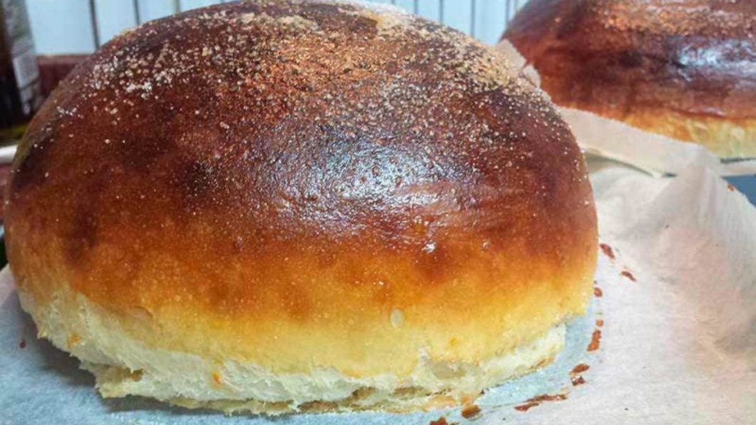 En algunos sitios, antes de introducir la masa en el horno, se hace un corte en forma de cruz, como un pan tradicional, aunque es opcional. Horneamos durante 25 minutos hasta que tenga un color tostado por fuera. Si se dora muy deprisa, se puede cubrir con papel de aluminio hasta que se cueza el interior. Dejamos que enfríe antes de cortar una porción.