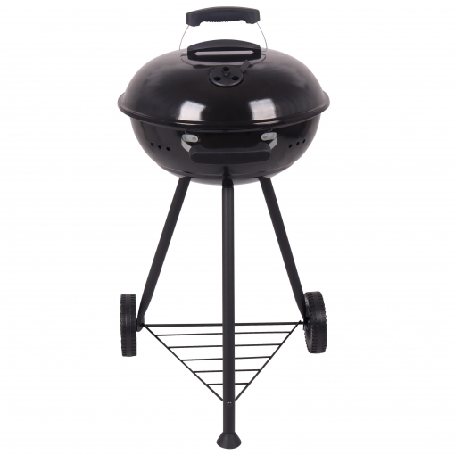 Otra barbacoa pequeña y fácilmente portátil es el modelo New Cadix que se vende en Carrefour. Cuenta con tapa cuba y tapa en acero esmaltado muy resistente. Cuenta con una rejilla de acero cromado y un colector de cenizas interno extraíble y fácil de limpiar. Tiene dos ruedas para un fácil transporte, y una rejilla en la parte inferior para almacenar objetos, como bebidas o platos. Las medidas son de 51x48x87cm así que es una opción ideal para espacios pequeños. Su precio es muy económico y cuesta tan solo 35 euros.