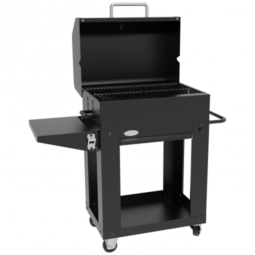 Las barbacoas también pueden ser bonitas y guardar una estética elegante. Un buen ejemplo es la barbacoa Miranda de venta en Carrefour. Es de color negro y líneas cuadradas, sencillas y bonitas. Funciona con carbón y cuenta con un sistema manual para elevar la bandeja del fuego. Tiene un depósito para recoger cenizas y una tapa para función horno. También lleva un termómetro incorporado para conseguir los mejores resultados. Tiene una superficie dividida en dos parrillas de 37 cm x 29 cm, cada una. Lleva incorporado un abridor de botellas, y cuatro ruedas de goma, dos de ellas con freno. Tiene un precio de 145 euros y se puede pagar en tres cuotas de 48,33 euros.