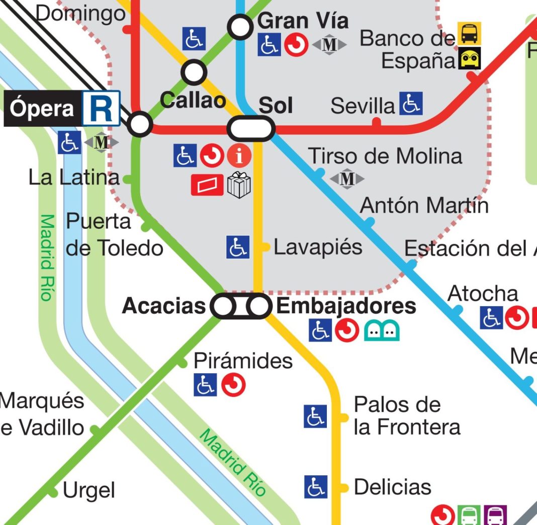 Si tu plan es ir desde la estación de Acacias de la línea 3 hasta la línea 5 que pasa a ser la estación de Embajadores estás de suerte pues el tiempo aproximado que se tarda de una estación a otra es de 4 minutos y aunque sigue siendo una transbordo largo, es menos de la mitad de lo que se tarda en hacer el cambio de línea en la estación de Diego de León.