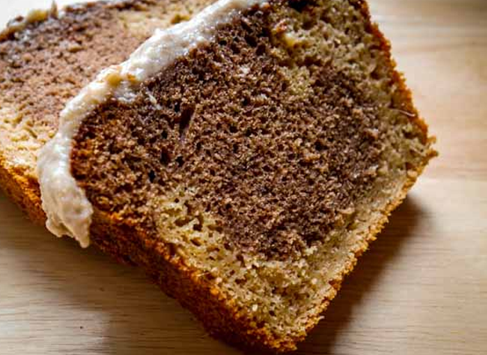 Con el horno precalentado a 180ºC, horneas durante 40-50 minutos. Luego empiezas con la cobertura, que es muy sencilla de hacer. para ello necesitas queso mascarpone y azúcar glass. Mezclas sin batir demasiado y añades puré de plátano.