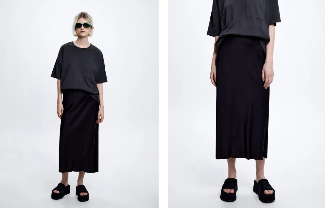 Si eres amante de los diseños clásicos, esta otra falda de Parfois tampoco podrá faltar en tu armario. También de diseño midi, llama la atención gracias a su intenso tono negro, assí como por su acabado satinado. Elegante, sofisticada y fácil de combinar al mismo tiempo, además te puedes hacer con ella ya en la tienda por tan solo 29,99 euros. Será una gran inversión.