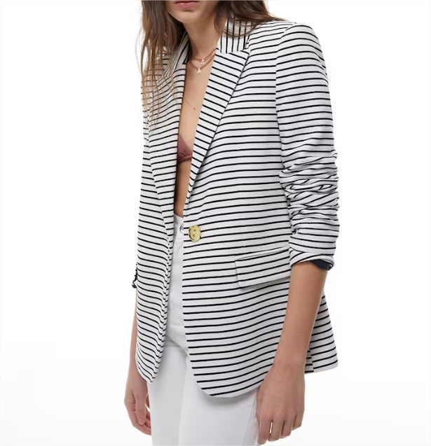 La elegancia por bandera con este precioso placer de rayas que podrás combinar con pantalones de pinzas o falda larga para lucir un aspecto que será el centro de todas las miradas mientras te sientes como una verdadera reina.